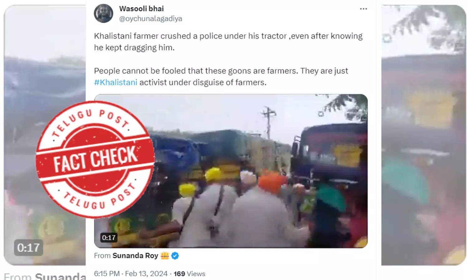 and also “So-called Anndatta Farmers crushed a Police officer under a tractor #FarmersProtest2024 #