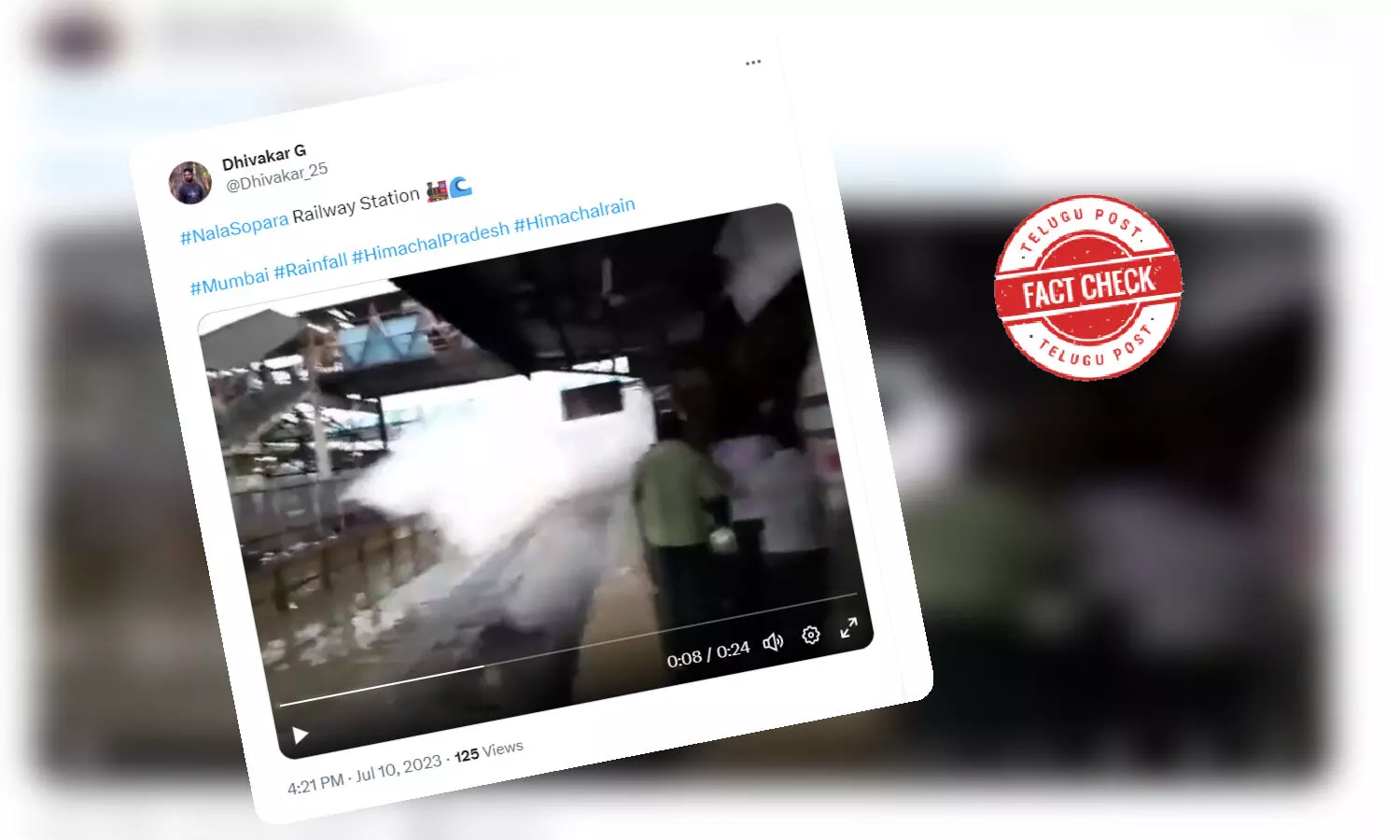 A video of a speeding train splashing water onto commuters standing on a platform in a railway station is going viral with a claim that the video shows a flooded Nala Sopara railway station in Mumbai. Several social media users are sharing this video as recent and shot during heavy rains in 2023.