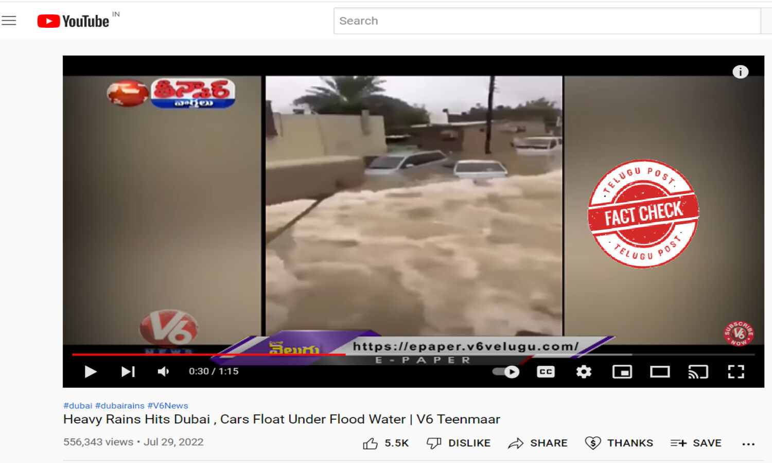 The video was also telecasted in one of the programs in Telugu local TV, mentioning that floods have drowned the country of Dubai.