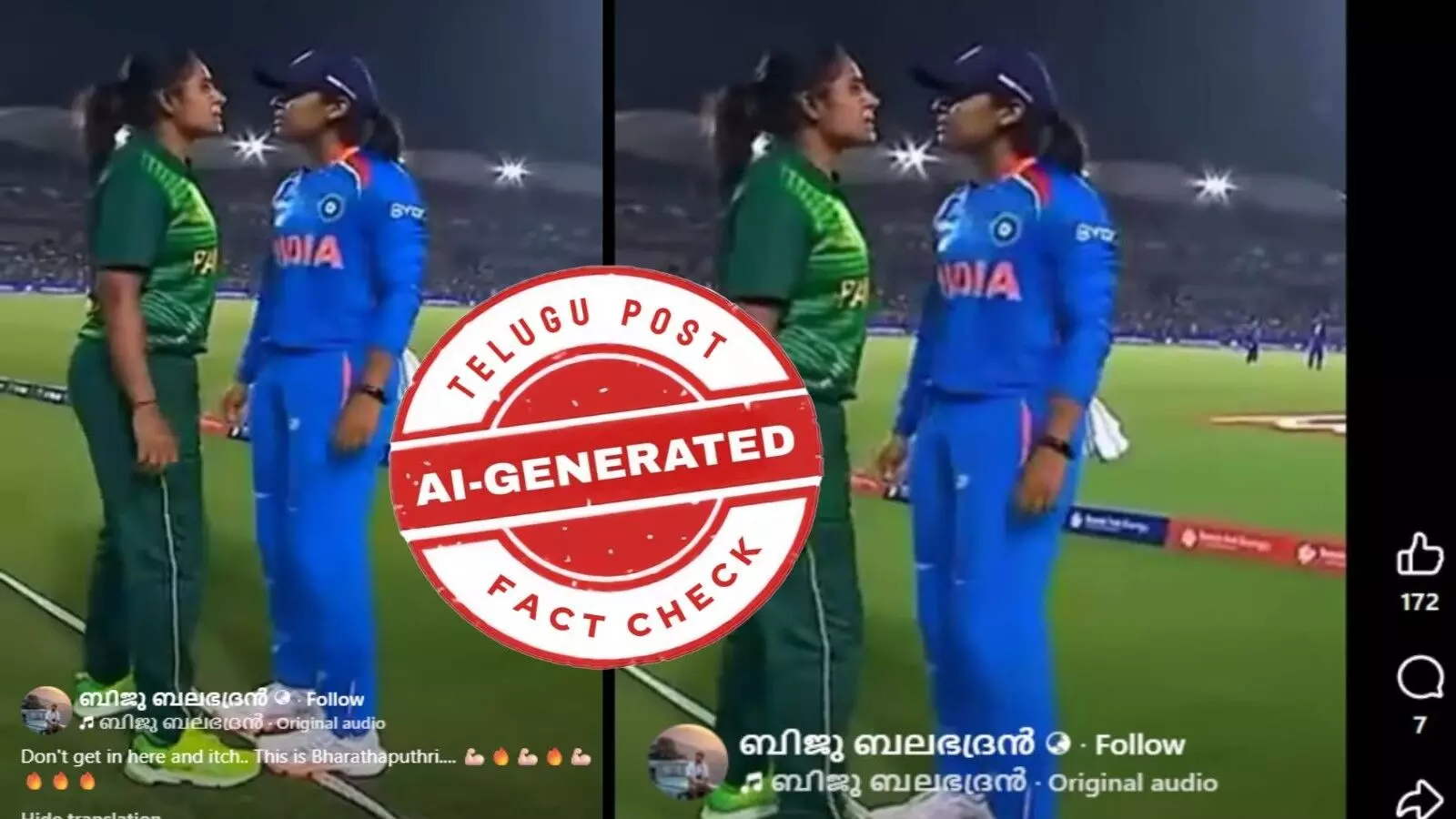 వైరల్ అవుతున్న వీడియోను ఏఐ ద్వారా..భారత్-పాకిస్థాన్ మహిళా క్రికెటర్ల మధ్య తోపులాట
