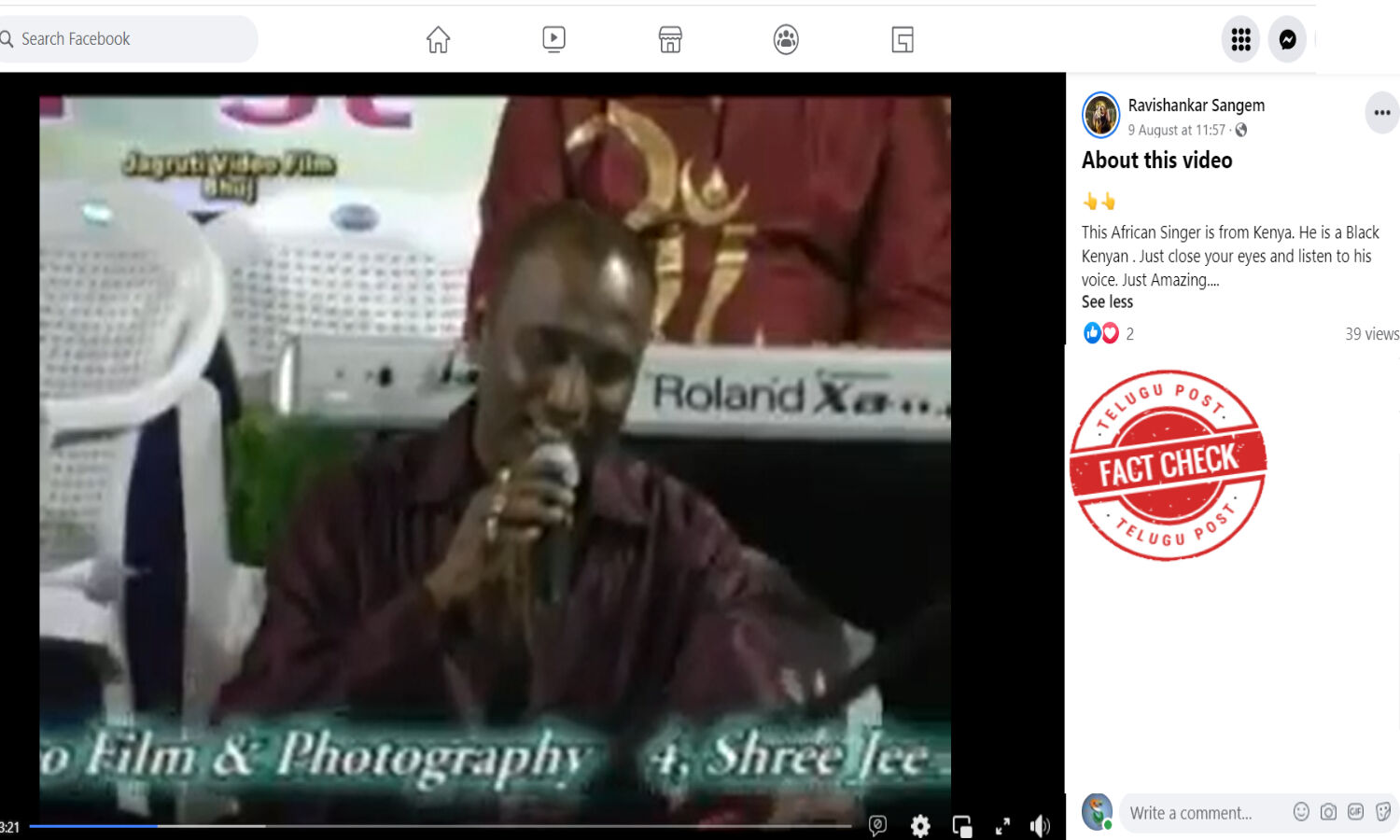 ఈ వాదన లేదా క్లెయిం ఫేస్బుక్, ఇతర ప్లాట్ఫారమ్లలో వైరల్గా మారింది, ఆంగ్లం లో ఉన్న క్లెయిం "" తర్జుమా చేయగా "కెన్యా నుంచి వచ్చిన ఈ ఆఫ్రికన్ సింగర్ నల్లజాతి వ్యక్తి. కళ్ళు మూసుకుని అతని గొంతు వినండి. అద్భుతమైన గాత్రం"