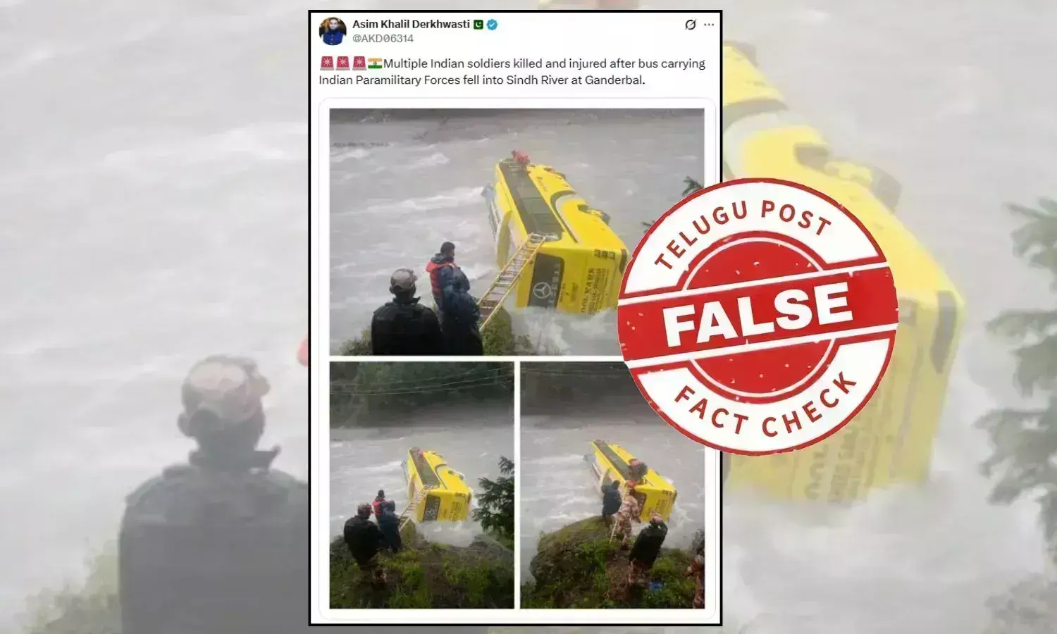 Claim : గందర్బల్ వద్ద సింధ్ నదిలో భారత పారామిలిటరీ దళాలను తీసుకెళ్తున్న బస్సు పడిపోవడంతో అనేక మంది భారతీయ సైనికులు మరణించారు, గాయపడ్డారు