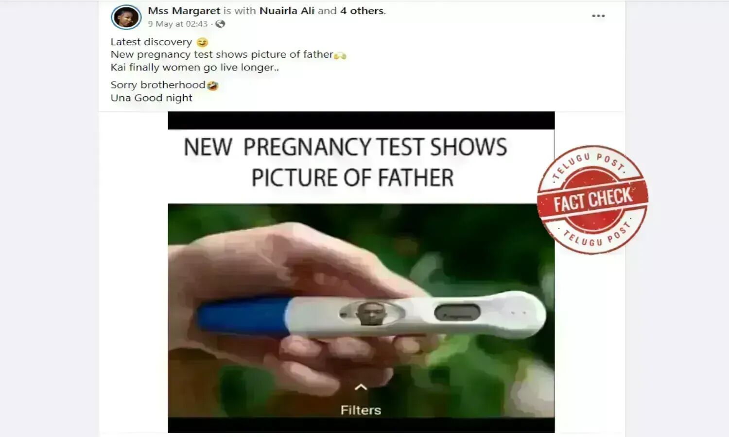 ప్రెగ్నెన్సీ టెస్ట్లో తండ్రి ఎవరనేది తెలుస్తుందన్న వాదన అవాస్తవం. ఈ చిత్రం మార్ఫింగ్ చేశారని గుర్తించారు.