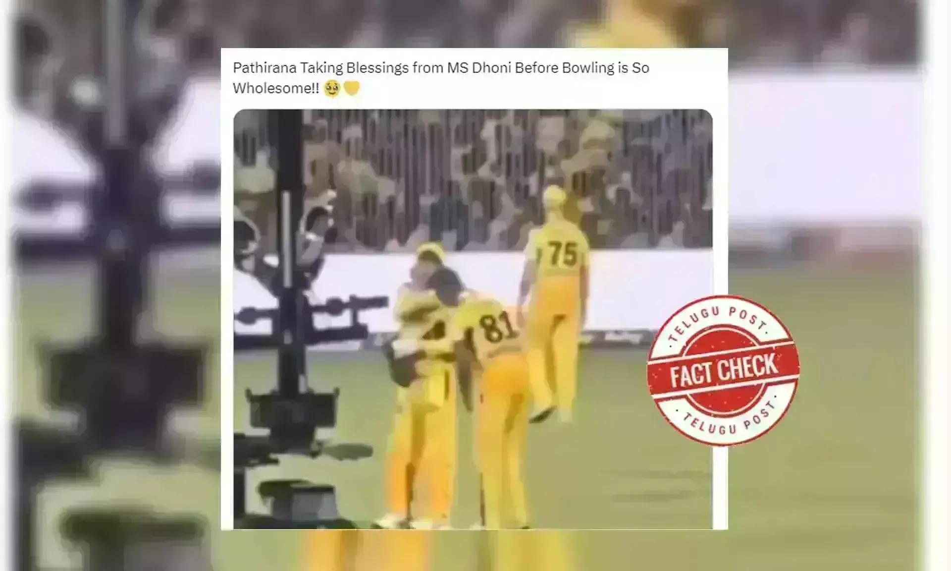 ఫ్యాక్ట్ చెక్: చెన్నై సూపర్ కింగ్స్ బౌలర్ పతిరానా ధోని ఆశీర్వాదం తీసుకోలేదు. మతీష పతిరానా కిందకు వంగి బౌలింగ్ మార్కర్ ను తీసుకున్నాడంతే!!
