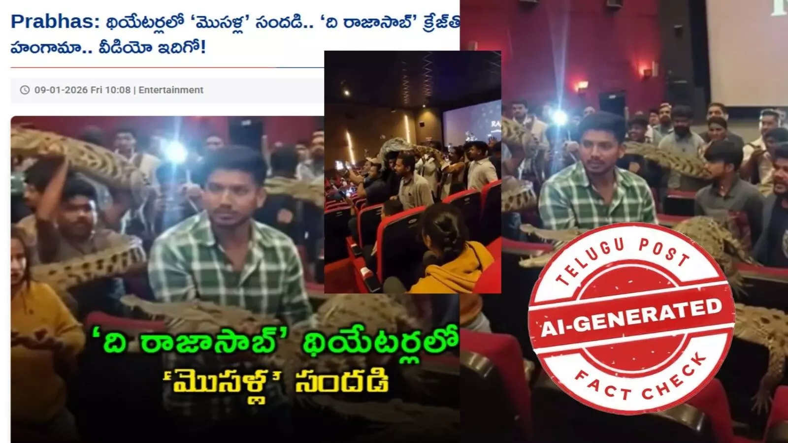 ఫ్యాక్ట్ చెక్: ఏఐ వీడియోలను రాజా సాబ్ సినిమా థియేటర్లలోకి తీసుకుని వెళ్లిన నిజమైన మొసళ్లుగా ప్రచారం చేస్తున్నారు