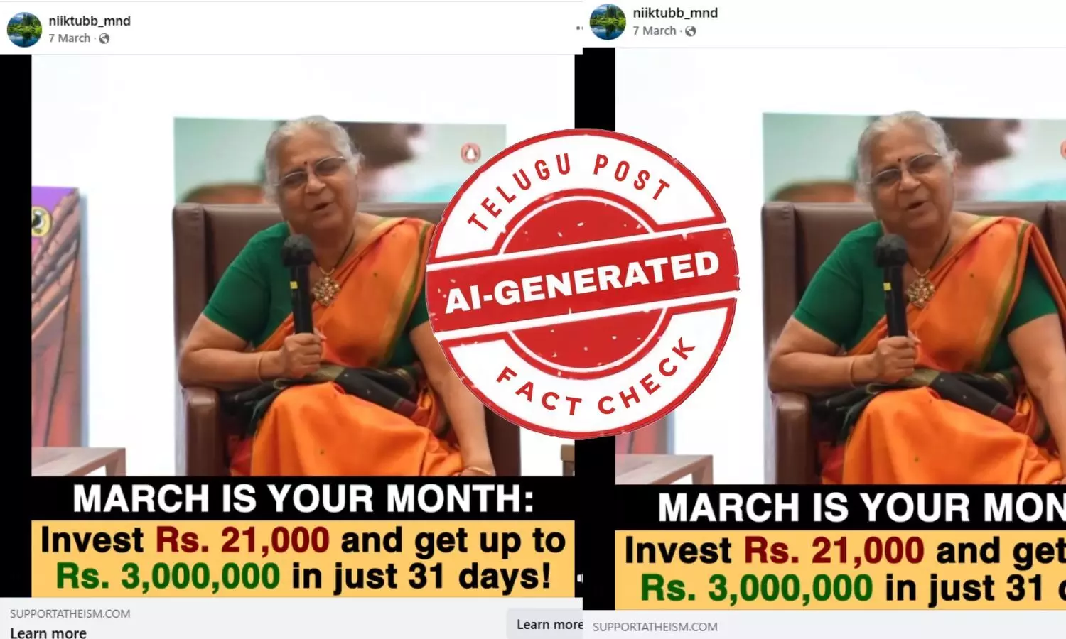 ఫ్యాక్ట్ చెక్: 21వేల రూపాయలతో 30లక్షలు సంపాదించవచ్చని ఇన్ఫోసిస్ చైర్పర్సన్ సుధా మూర్తి చెప్పలేదు