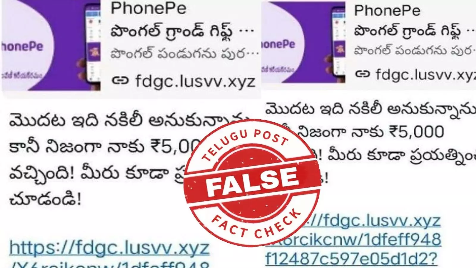 ఫ్యాక్ట్ చెక్: పొంగల్/రిపబ్లిక్ డేకి ఫోన్పే రూ. 5,000 మెగా గిఫ్ట్ అందించలేదు. మీ డబ్బులు కాజేయడానికి మోసగాళ్లు చేస్తున్న ప్రయత్నాల్లో ఇదీ ఒకటి