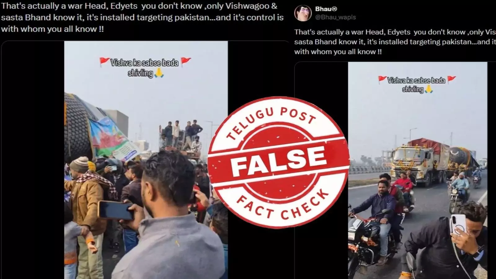 అయితే ఒక పెద్ద రాతి లాంటి నిర్మాణం చుట్టూ దండలు వేసి, భారీ ట్రక్కులో రవాణా చేస్తున్నట్లు చూపించే వీడియో సోషల్ మీడియాలో షేర్ అవుతోంది. భారతీయులు న్యూక్లియర్ వార్హెడ్ను పూజిస్తున్నట్లుగా పోస్టులు పెట్టారు కొందరు.