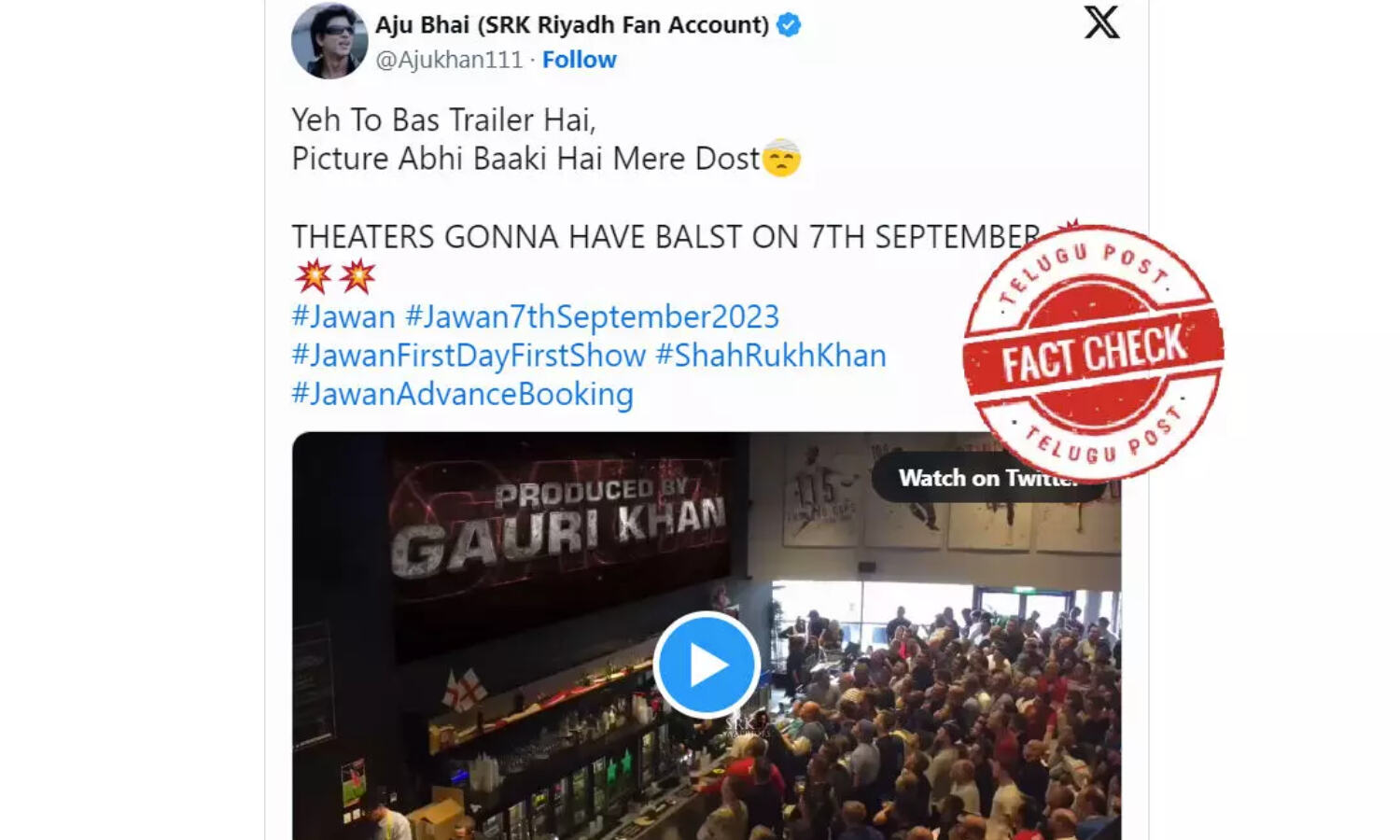 ఫ్యాక్ట్ చెక్: షారుఖ్ ఖాన్ అభిమానులు జవాన్ ట్రైలర్ ను చూసి సెలెబ్రేట్ చేసుకున్నారనే వాదనలో ఎటువంటి నిజం లేదు