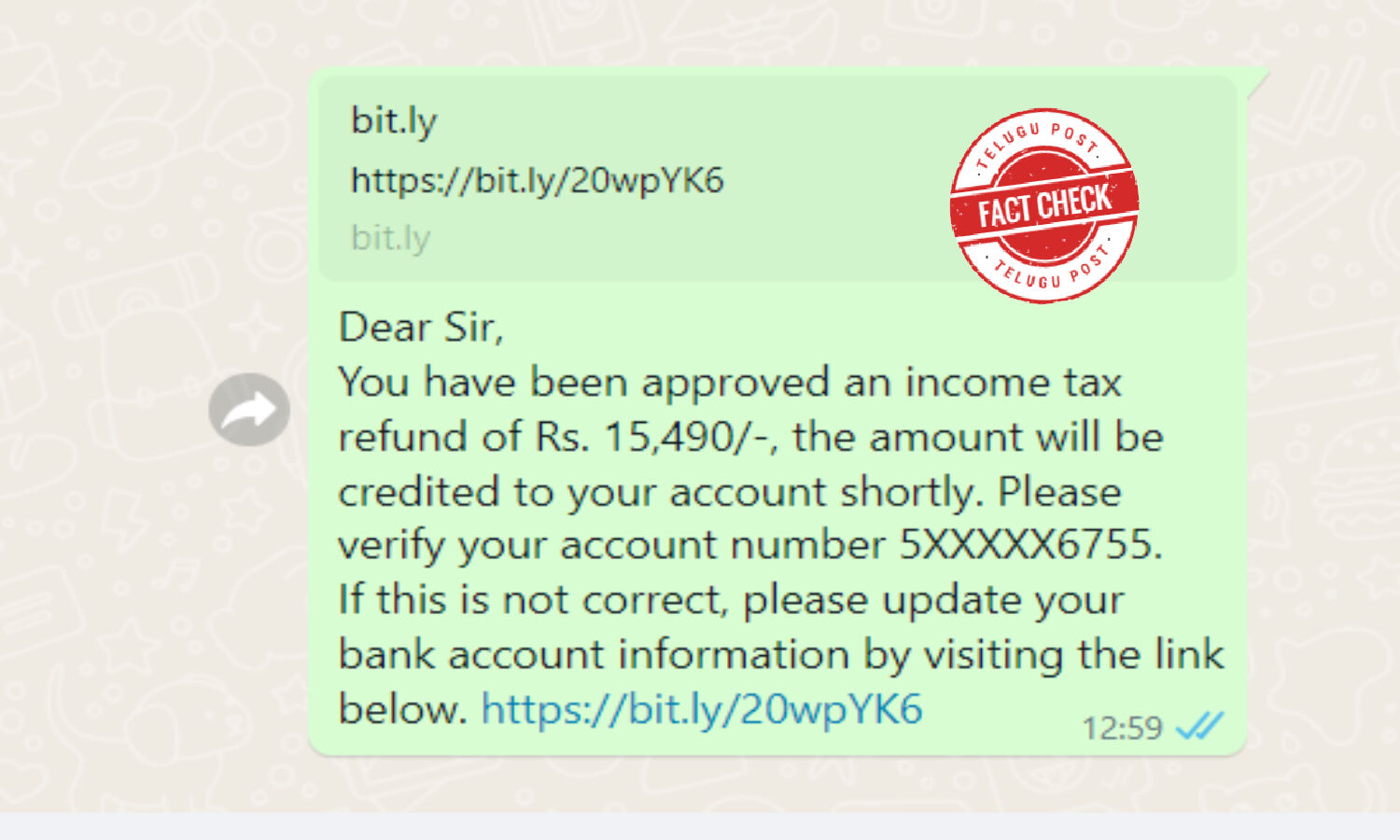 ఫ్యాక్ట్ చెక్ : IT డిపార్ట్మెంట్ మెసేజీలు పంపి.. రీఫండ్ను క్లెయిమ్ చేయడానికి బ్యాంక్ వివరాలను అడిగిన మెసేజీలు నకిలీవి