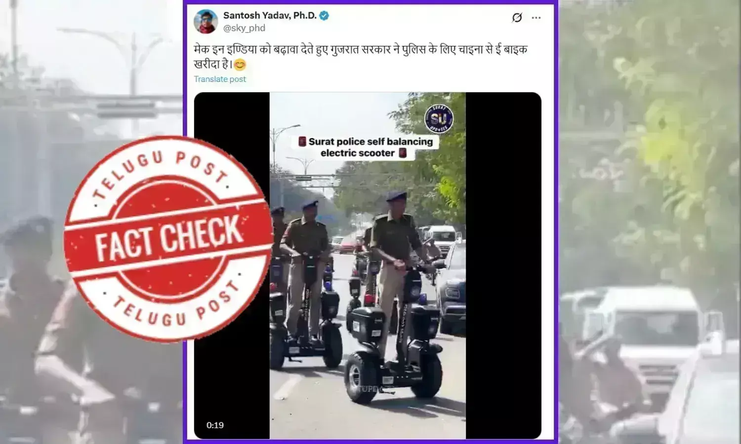 కొంతమంది ‘సూరత్ పోలీసులు పెట్రోలింగ్ కోసం సెల్ఫ్ బ్యాలెన్సింగ్ ఈ-బైక్లనుతీసుకొచ్చారు, చైనా నుండి దిగుమతి చేసుకున్నారా?’ అనే క్యాప్షన్తో వీడియోను షేర్ చేశారు.