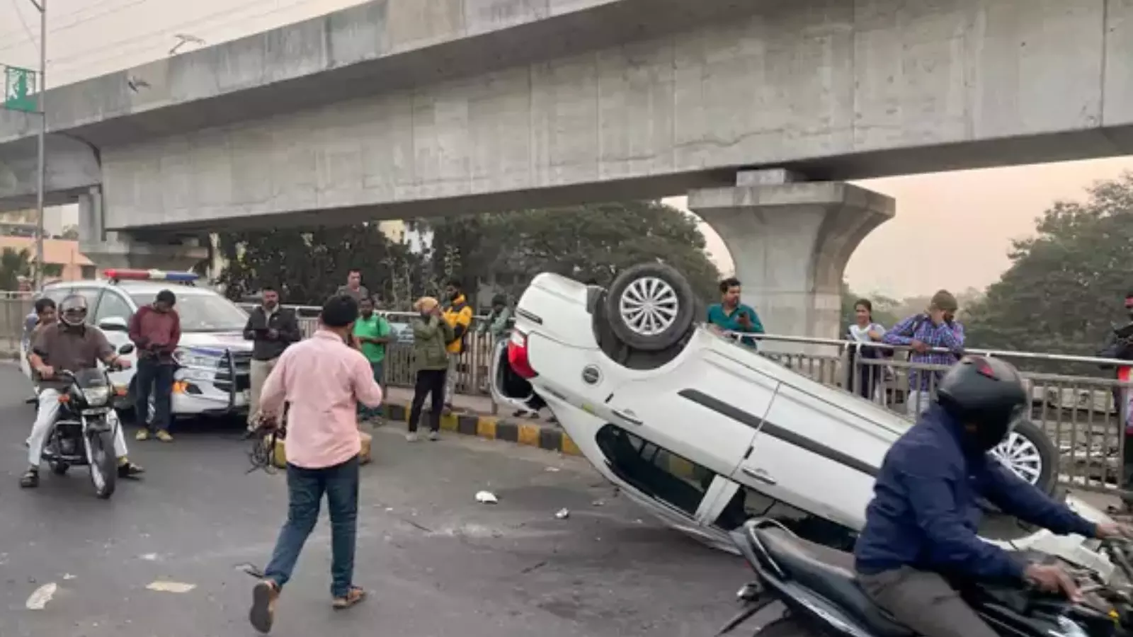 Hyderabad : ఫ్లైఓవర్ పై కారు అదుపు తప్పి బోల్తా