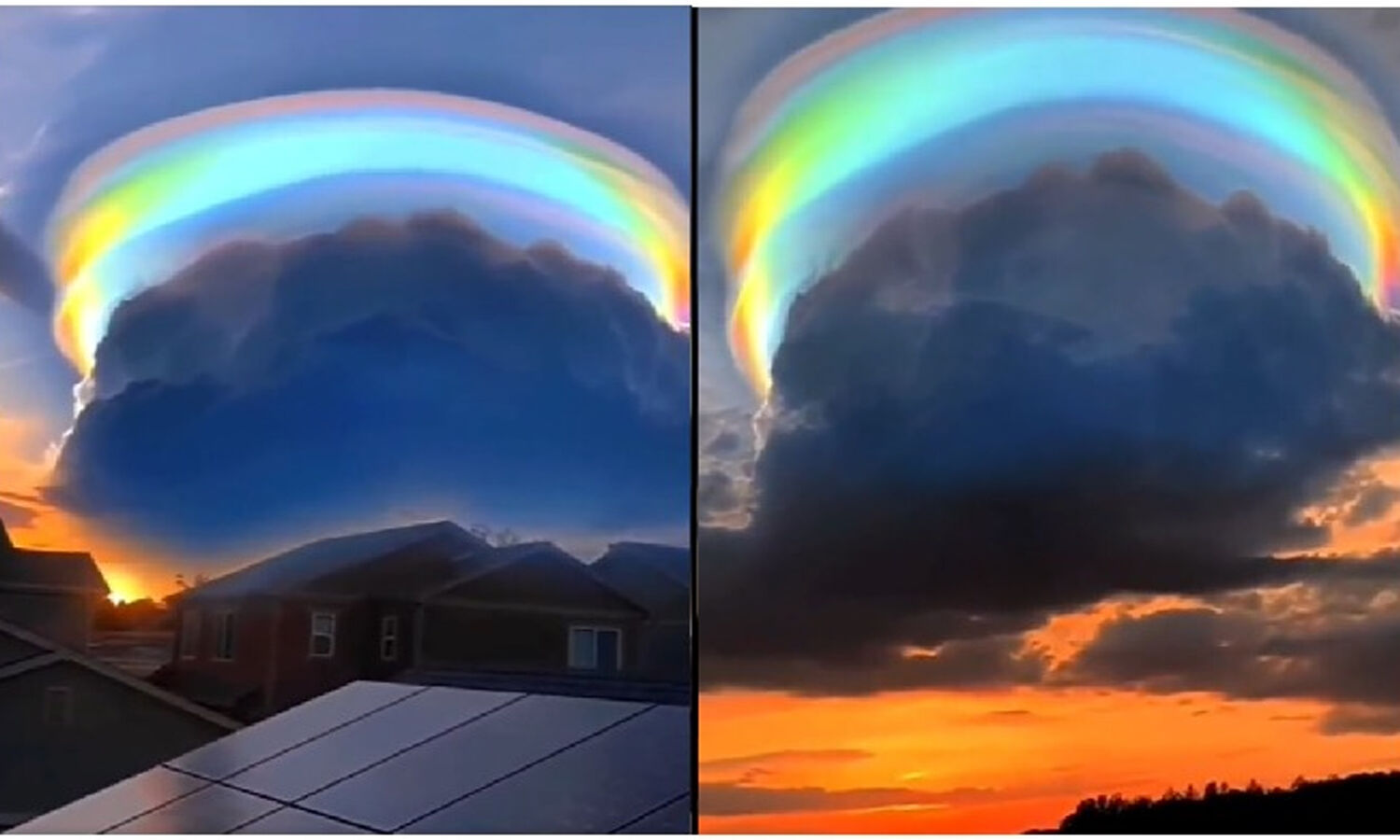 ఆకాశంలో అద్భుతం ఆవిష్కృతమైంది. ఆకాశంలో మేఘాలు ఏర్పడటం, అవి రకరకాల ఆకారాల్లో కనిపించడం, వర్షం కురిసినపుడు ఇంధ్ర దనస్సు కనిపించడం మామూలే. కానీ ఓ మేఘం టోపీ ఆకారంలో కనిపించడం ఒక వింతైతే.. దాని చుట్టూ ఇంద్ర ధనస్సు కిరీటంలా ఏర్పడటం అబ్బురపరిచింది. ఇది నిజంగా ప్రకృతి సృష్టించిన అందమే. మబ్బు తొడిగిన కిరీటం లా ఉన్న ఆ దృశ్యం నెట్టింట వైరల్ అవుతోంది.