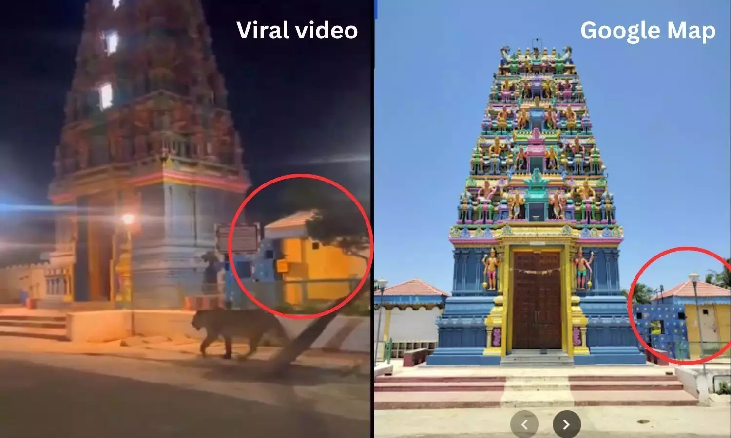 ಬೆಂಗಳೂರಿನ ರಾಜಾಜಿನಗರದ ದೇವಸ್ಥಾನದ ಮುಂದೆ ಇತ್ತಿಚಿಗೆ ಸಿಂಹವೊಂದು ತಿರುಗಾಡುತ್ತಿದೆ ಎಂಬ ಸುದ್ದಿ ಸಾಮಾಜಿಕ ಜಾಲತಾಣದಲ್ಲಿ ವೈರಲ್ ಆಗಿದೆ. ರಘು ಎನ್ ಮೂರ್ತಿ ಎಂಬ ಎಕ್ಸ್ ಖಾತೆದಾರ ದೇವಸ್ಥಾನದ ಮುಂದೆ ಸಿಂಹವೊಂದು ನಡೆದುಕೊಂಡು ಹೋಗುತ್ತಿರುವ ವಿಡಿಯೋವನ್ನು ಶೇರಿ ಮಾಡಿ ವಿಡಿಯೋವಿಗೆ ಕ್ಯಾಪ್ಷನ್ ಆಗಿ "ಬೆಂಗಳೂರು ರಾಜಾಜಿನಗರ ಮಧ್ಯರಾತ್ರಿ 11 ಘಂಟೆ" ಎಂದು ಬರೆದು ಹಂಚಿಕೊಂಡಿದ್ದಾರೆ