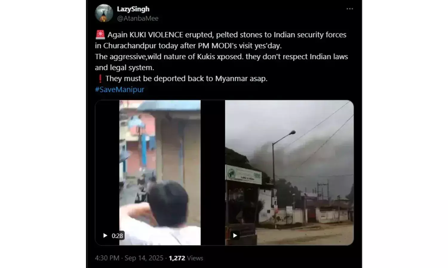 Video shows the recent violence in Manipur’s Churachandpur following PM Modi’s September 2025 visit.Fact :