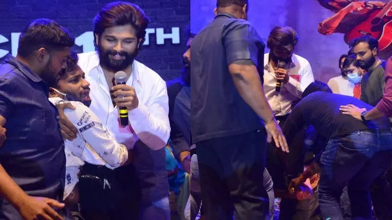 మరి చాలా రోజులకి పబ్లిక్ ఈవెంట్ కి హాజరైన అల్లు అర్జున్ ని ఆయన అభిమానులు ఎంతగా మిస్ అయ్యారో స్టేజ్ మీద అల్లు అర్జున్ మీద పడిపోయిన అభిమానులను చూస్తే అర్ధమవుతుంది.