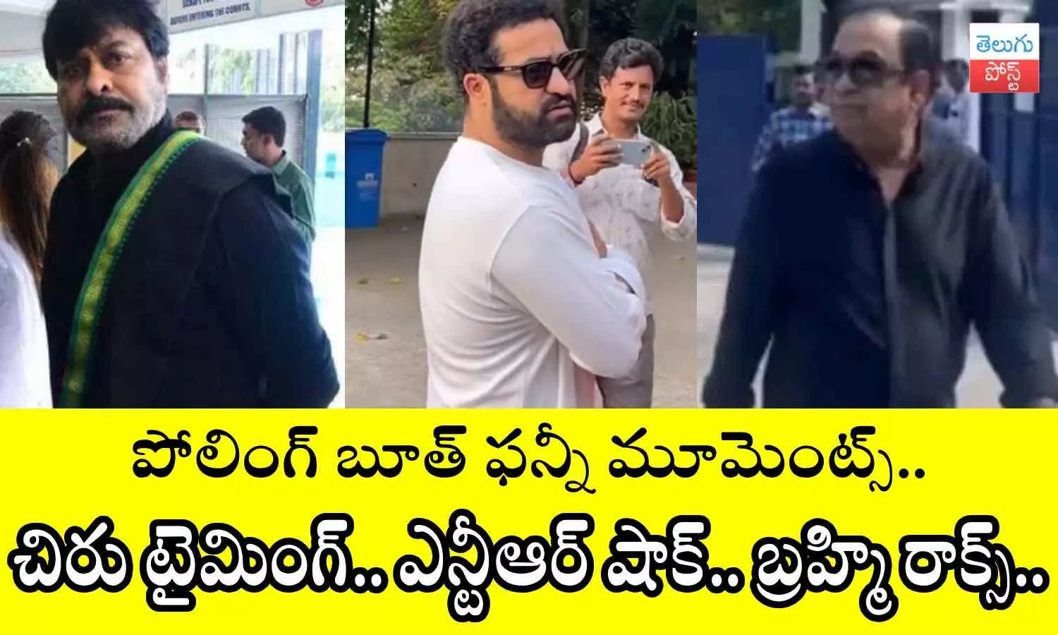 Election Day : నేడు తెలంగాణ అసెంబ్లీ ఎన్నికల పోలింగ్ డే అన్నది అందరికి తెలిసిందే. ఇక ఒక పౌరుడిగా తమ ఓటు హక్కుని ఉపయోగించుకునేందుకు ప్రతి ఒక్కరు పోలింగ్ బూత్ దగ్గరకి చేరుకుంటున్నారు. టాలీవుడ్ సెలబ్రిటీస్ కూడా పోలింగ్ బూత్స్ వద్దకి వచ్చి, సాధారణ ప్రజలతో పాటు క్యూ లైన్లో నిలబడి వెళ్లి తమ ఓటు హక్కుని వినియోగించుకుంటున్నారు. ఇక ఈక్రమంలోనే తమ ఓటుని వేయడానికి వచ్చిన చిరంజీవి, ఎన్టీఆర్, బ్రహ్మానందం సంబంధించిన ఫన్నీ మూమెంట్స్ నెట్టింట వైరల్ అవుతున్నాయి.