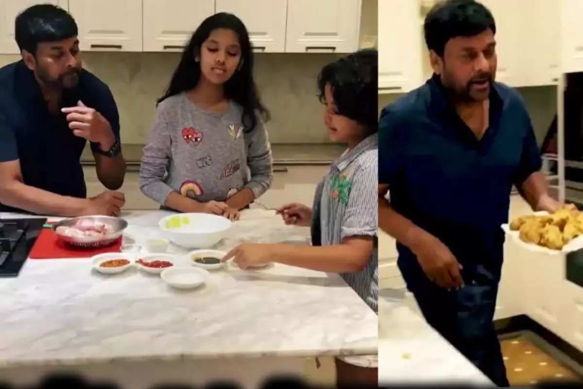 చిరంజీవి సినిమాల్లో నెంబర్ వన్ హీరో. మరి వంటల్లో కూడా చిరు నెంబర్ వన్. అప్పుడప్పుడు గరిట తిప్పే చిరంజీవి లాక్ డౌన్ లో చిరంజీవి తన తల్లి కోసం ఉప్మా పెసరట్టు వేసి పెట్టడం దగ్గరనుండి.. ఆయన చాలా రకాల డిషెస్ ఇంట్లో వాళ్ళ కోసం చేసిపెట్టారు. మరి సండే ఫన్ డే అన్నట్టుగా మానవరాళ్లతో.. చిరు సండే బోర్ కొడుతోంది అంటే.. మనవరాళ్లు ఇద్దరూ కె ఎఫ్ సి తినాలనుంది అనగానే.. బయట తిళ్ళు తింటే ఆరోగ్యం పాడవుద్ది…. ఎందుకు మనమే ఇంట్లో చేద్దామంటూ మానవరాళ్లతో కలిసి కె ఎఫ్ సి చికెన్ వండేశాడు చిరు.
