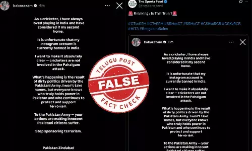 ఫ్యాక్ట్ చెక్: పహల్గామ్ ఉగ్రదాడి వెనుక పాకిస్థాన్ ఆర్మీ ఉందంటూ క్రికెటర్ బాబర్ ఆజం తన సోషల్ మీడియా ఖాతాలో వెల్లడించాడుby Sachin Sabarish6 May 2025 12:45 PM IST