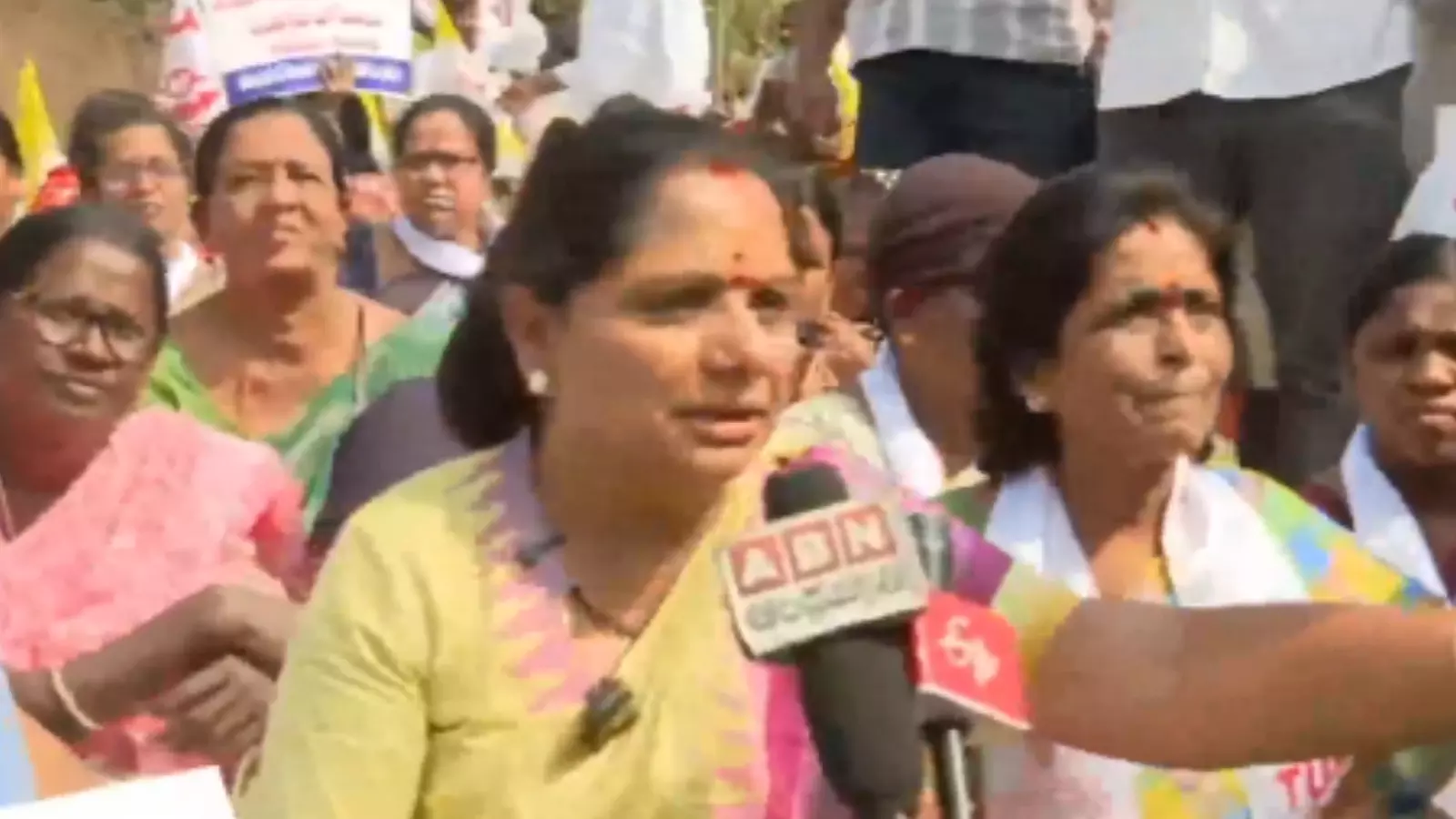 కరీంనగర్ జిల్లాలో కల్వకుంట్ల కవిత ఆందోళనకు దిగారు.