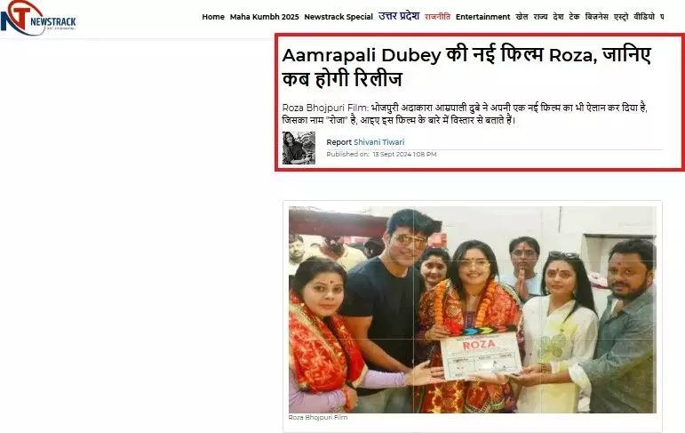 اس جانکاری کی مدد سے جب ہم نے گوگل سرچ کیا تو ہمیں 13 ستمبر 2024 کا ایک نیوز آرٹیکل ملا جس میں آمراپالی کے حوالے سے بتایا گیا ہیکہ انہوں نے اپنی نئی فلم 'روزہ' کی شوٹنگ شروع کردی ہے۔