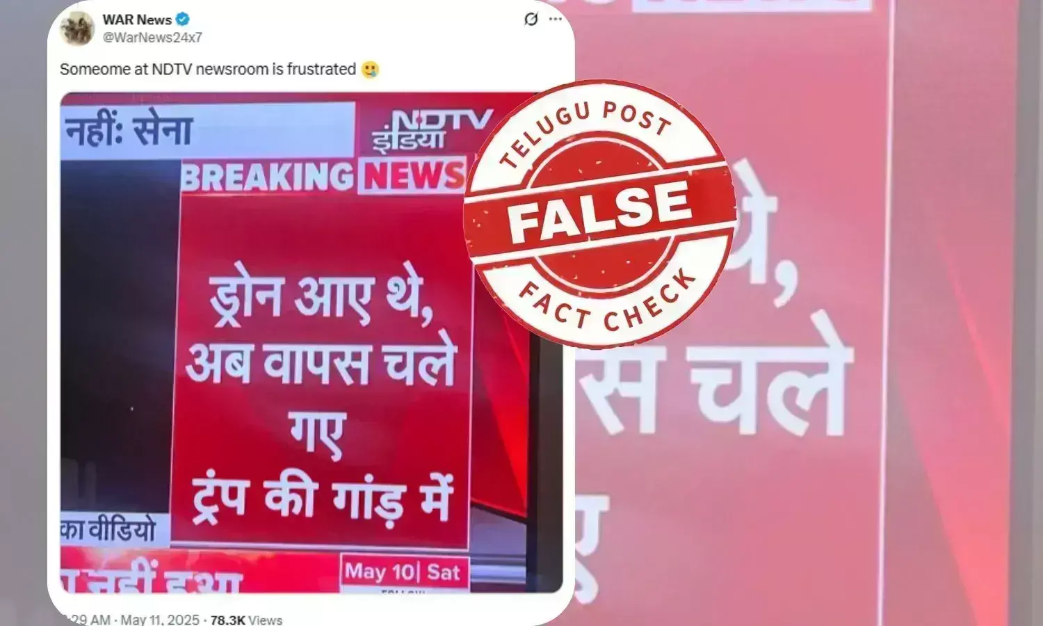 اس خبر کے بعد این ڈی ٹی وی ہندی نیوز چینل نے 'بریکنگ نیوز' کے ایک گرافیک میں آرمی کے بیان کو شامل کرتے ہوئے ہندی میں لکھا "ड्रोन आए थे, अब वापस चले गए " [ترجمہ: ڈرون آئے تھے، اب واپس چلے گئے]۔ اس گرافیک کو سوشل میڈیا کے صارفین نے ایکس اور فیس بک پر شئیر کیا ہے۔ ان دونوں سوشل میڈیا پوسٹس کا موازنہ کرنے پر پتہ چلتا ہیکہ اس گرافیک میں کہیں بھی ٹرمپ کا تذکرہ نہیں کیا گیا ہے۔