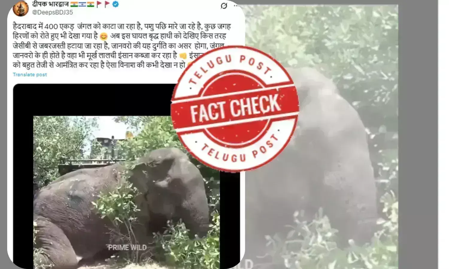 سری لنکا کے 2018 کے زخمی ہاتھی کی ویڈیو کو جھوٹے دعوے کے ساتھ کنچہ گچی باؤلی کی اراضی صفائی سے جوڑ کر وائرل کیا گیا، حالانکہ حیدرآباد میں ایسا کوئی ہاتھی موجود نہیں۔