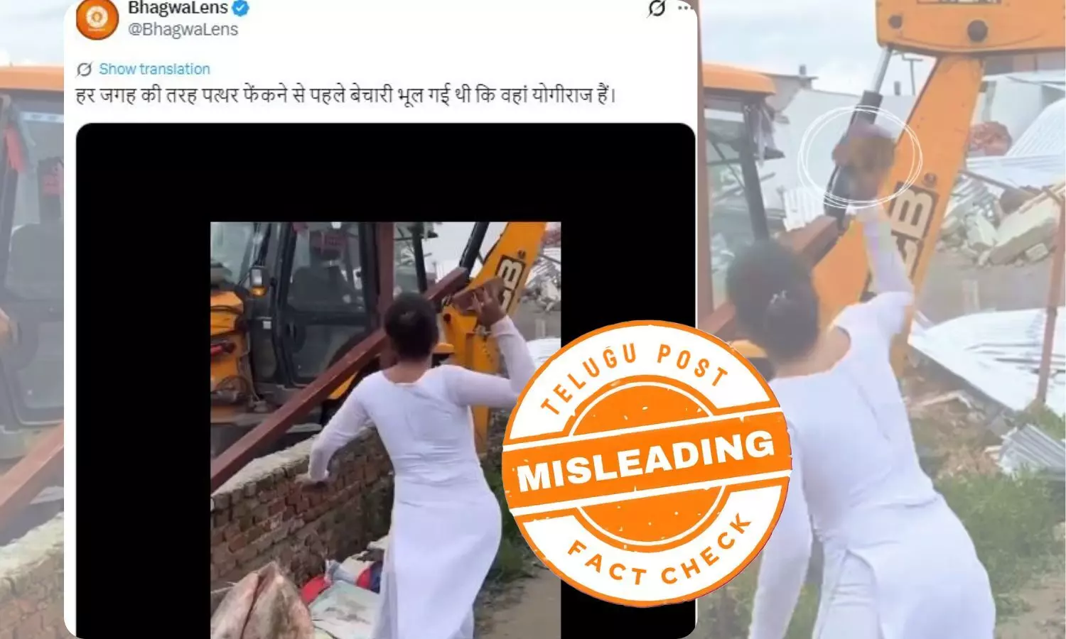 تحقیق سے واضح ہوگیا کہ غیرمجاز تعمیرات کی انہدامی کارروائی کا وائرل ویڈیو نیپال کی راجدھانی کٹھمنڈو شہر کا ہے۔ مقامی بلدیہ کے عملے کی جانب سے غیرقانونی مکانات گرائے جانے پر ایک خاتون نے جے سی بی مشین پر اینٹ پھینک کر اپنی ناراضگی جتائی لیکن اس ویڈیو کو اترپردیش کے واقعے کے طور پر پیش کرتے ہوئے ویڈیو کو من گھڑت بیانئے کے ساتھ شیئر کیا گیا۔ لہذا، وائرل پوسٹ میں کیا گیا دعویٰ گمراہ کن پایا گیا۔