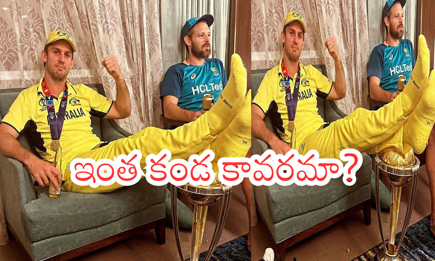 కప్ గెలిచిన తర్వాత హోటల్ గదులకు వెళ్లిన వాళ్లు సంబరాలు చేసుకున్నారు. తప్పులేదు. మందు తాగారు. అదీ నేరం కాదు. కానీ తాము దక్కించుకున్న కప్ పై కాళ్లు పెట్టి మందుతాగుతుండటమే ఇప్పుడు టాపిక్ గా మారింది. ఇది అవమానించడమేనన్న అభిప్రాయం వ్యక్తమవుతుంది. ఆస్ట్రేలియా ఆటగాడు మిచెల్ మార్ష్ ఒక చేత్తో మందుబాటిల్ పట్టుకుని రెండు కాళ్లు వరల్డ్ కప్ పై పెట్టడం ఇప్పుడు సోషల్ మీడియాలో వైరల్ అయింది. అదేనిజమైతే మాత్రం ఆస్ట్రేలియా ఆటగాళ్లు పెద్ద తప్పు చేసినట్లే. గౌరవం లేకుండా వ్యహరించినట్లేనన్న కామెంట్స్ వినపడుతున్నాయి.
